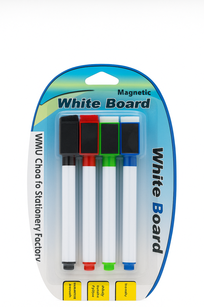 تأتي بأربعة ألوان واضحة (أسود، أحمر، أخضر، أزرق)، وتمتاز بغطاء مغناطيسي يمكن تثبيته بسهولة على أي سطح معدني، بالإضافة إلى ممسحة مدمجة في الغطاء لمسح الكتابة بسرعة وفعالية.