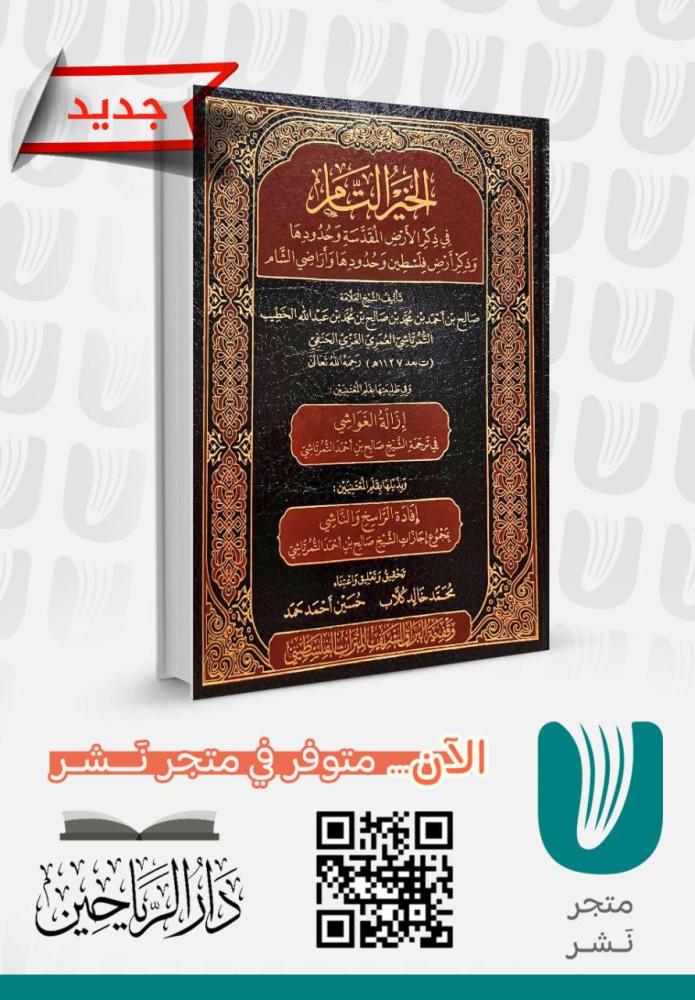 فهذه تُحفةٌ غَزّيةٌ، وشَذرةٌ شاميّةٌ، لِعَلَمٍ من أعلام فلسطين، وعالِمٍ من علماء المسلمين، "سليل العلماء الراسخين، والفضلاء المؤلّفين، وفخر الفضلاء المكرمين، وزين الطلبة المحصِّلين" الشيخ: صالح بن أحمد بن محمد بن صالح بن محمد بن عبد الله الخطيب التُّمُرْتَاشِيّ العُمَريّ الغَزّيّ الحَنَفِيّ؛ الموسومة بــ "الخَيْر التّام في ذِكْر الأرض المقدّسة وحدودها وذِكْر أرض فلسطين وحدودها وأراضي الشّام"، فصّل فيها في مسألة حدود الشام وفلسطين والقدس، وهي -حسب اطّلاعنا- أول رسالةٍ مُفْرَدَةٍ في بيان حدود هذه المناطق الثلاث، وقد مَنّ المنّان علينا بإخراجها، وأكرمنا بتحقيقها والتعليق عليها، بعد أن كانت دفينة الخزائن، حبيسة المكتبات.