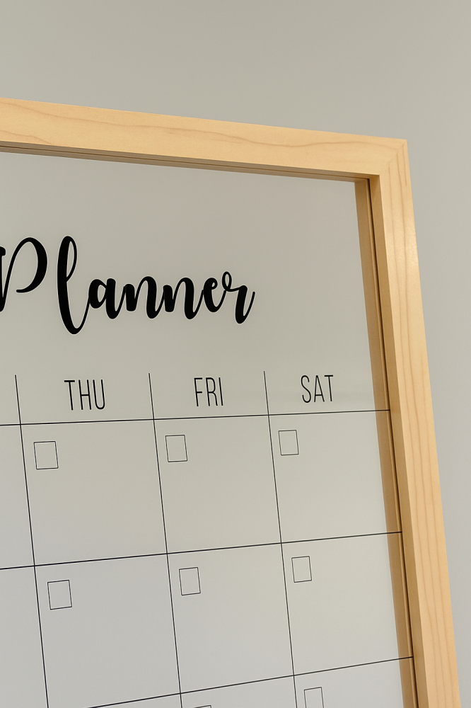 لوحة تخطيط شهري شفافة بإطار خشبي
