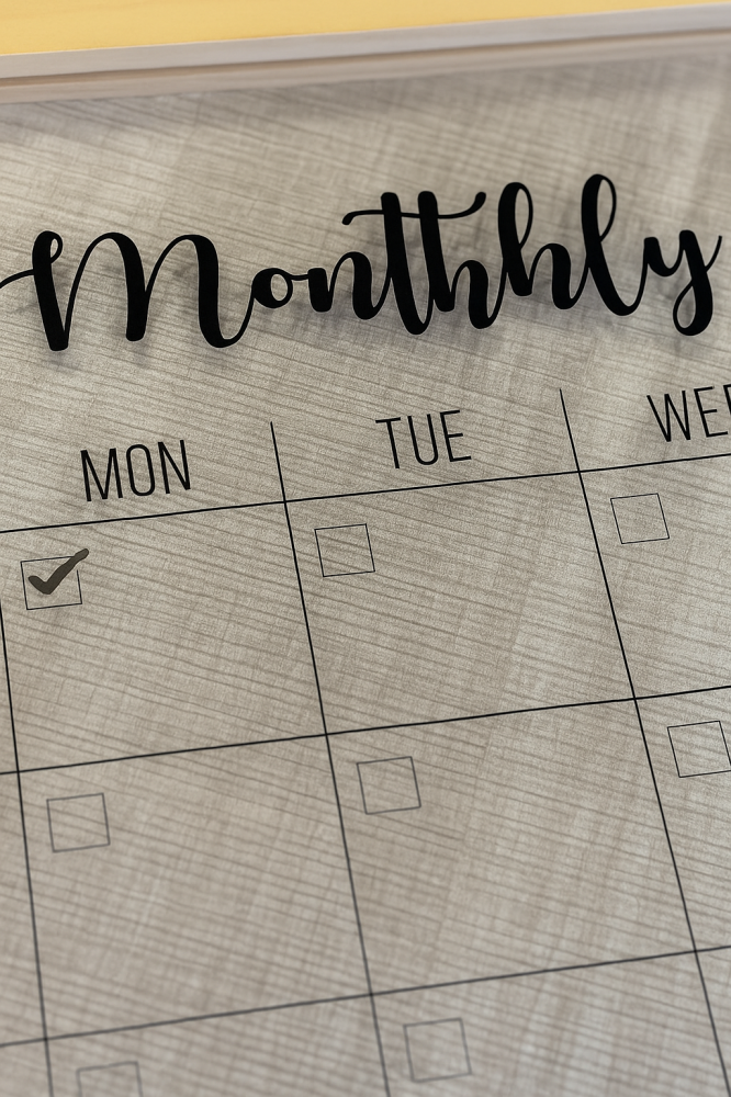 لوح تخطيط شهري خشبي – Monthly Planner Board (45×45 cm)