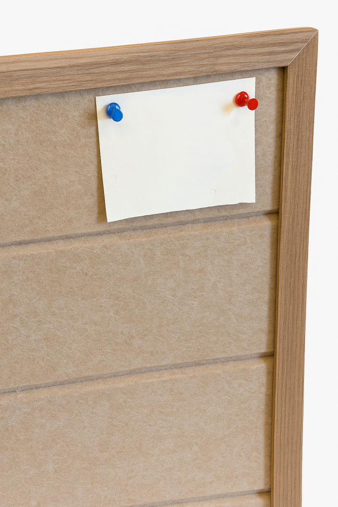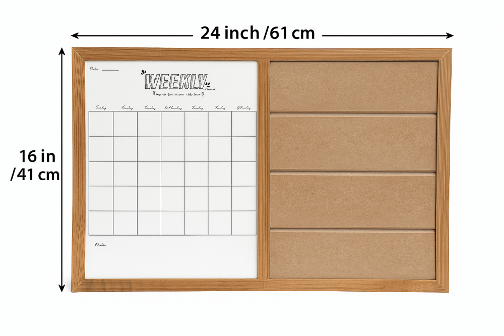 لوح أنيق متعدد الاستخدام يجمع بين السبورة البيضاء ولوح الفلين لتثبيت الملاحظات، بإطار خشبي طبيعي يمنح لمسة دفء واحترافية لمساحة عملك أو منزلك.