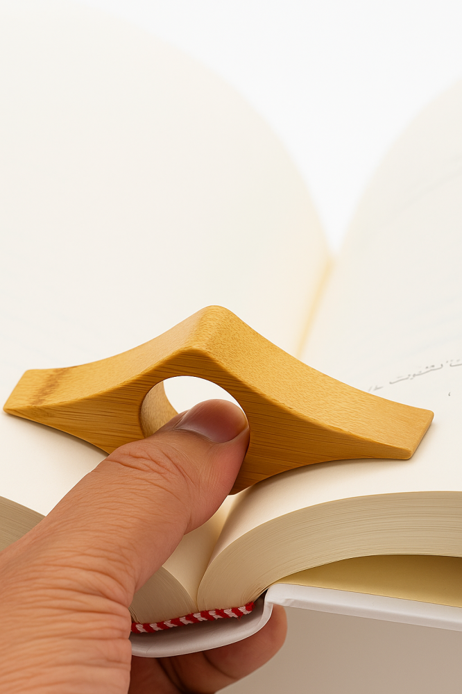 تمتع بتجربة قراءة سلسة بيد واحدة مع ممسك الصفحات الخشبي المصمم بدقة من خشب طبيعي عالي الجودة.