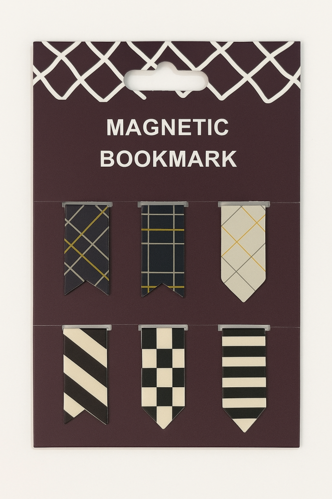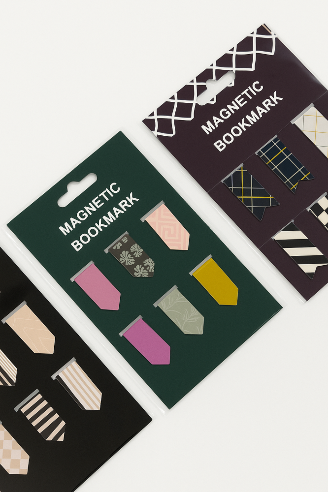 مجموعة فواصل مغناطيسية أنيقة تُستخدم لتحديد الصفحات في الكتب والمذكرات دون الإضرار بالأوراق. تتميز بتصميمها العصري وألوانها الجذابة التي تضيف لمسة جمالية إلى تجربة القراءة.