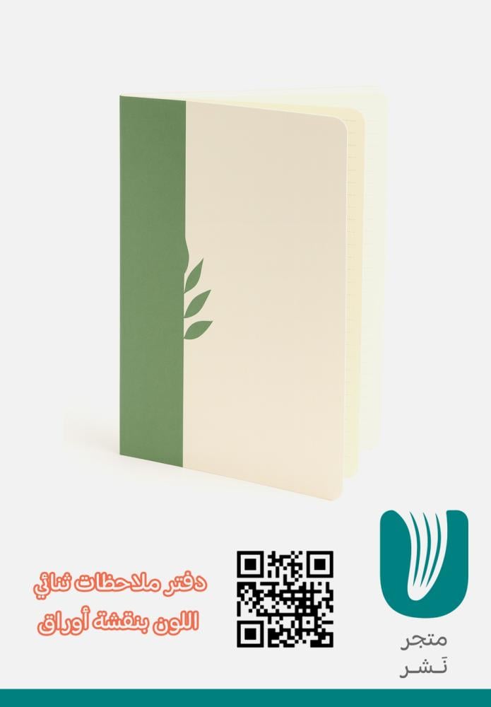 • 🪵 الغلاف: كرتوني ناعم الملمس بلونين متناغمين (أخضر طبيعي وعاجي فاتح).